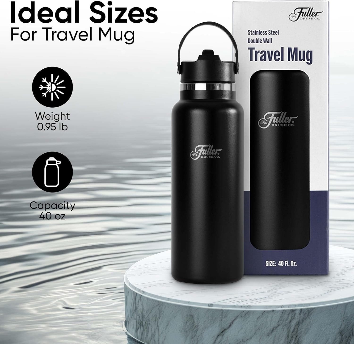 Fuller Stainless Steel Water Bottle with Straw Lid – BPA-Free, Sweat-Proof, Leak-Proof Travel Mug – Double Wall Insulated for Hot & Cold Drinks – Easy Carry Handle – Compact Size for Gym, Office & Outdoors